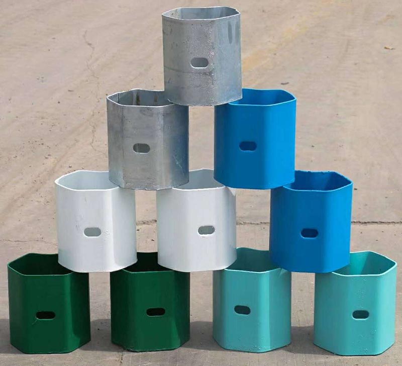 靜電噴涂防阻塊,采用雙重防腐處理,內涂層為熱鍍鋅,表面涂層是選用全聚脂粉末涂料,采用靜電噴涂方式使其與基體牢固地結合成一體。防阻塊是公路波形護欄的零件用于交通行業的圍欄裝飾安全防護。波形梁通過拼接螺栓相互拼接,并由連接螺栓固定于托架防阻塊上。路基護欄波形梁的搭接方向是安裝的關鍵,嚴格按照圖紙進行安裝。搭接方向應與行車方向一致。